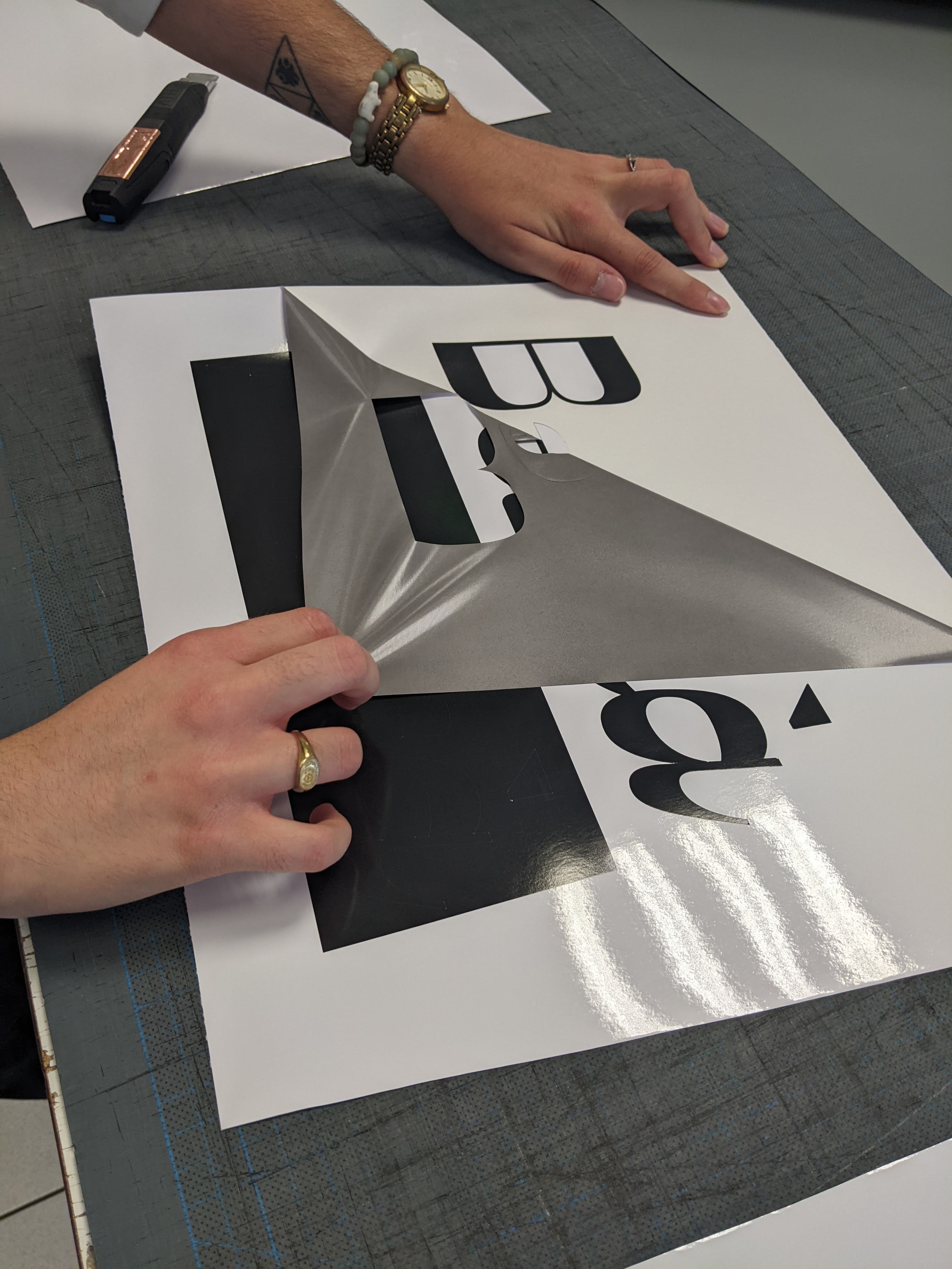 La deuxième partie, pratique, commençait par un passage en revue des machines du parc Hexis et leur spécificité ; puis la mise en œuvre de fichiers du nettoyage, passage par un RIP jusqu'à leurs impressions et laminages.